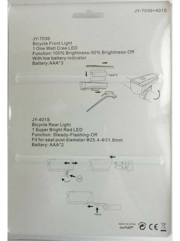 Комплект світла Фара + стоп YI JING JY-7036+401S на батарейках з кріпленням