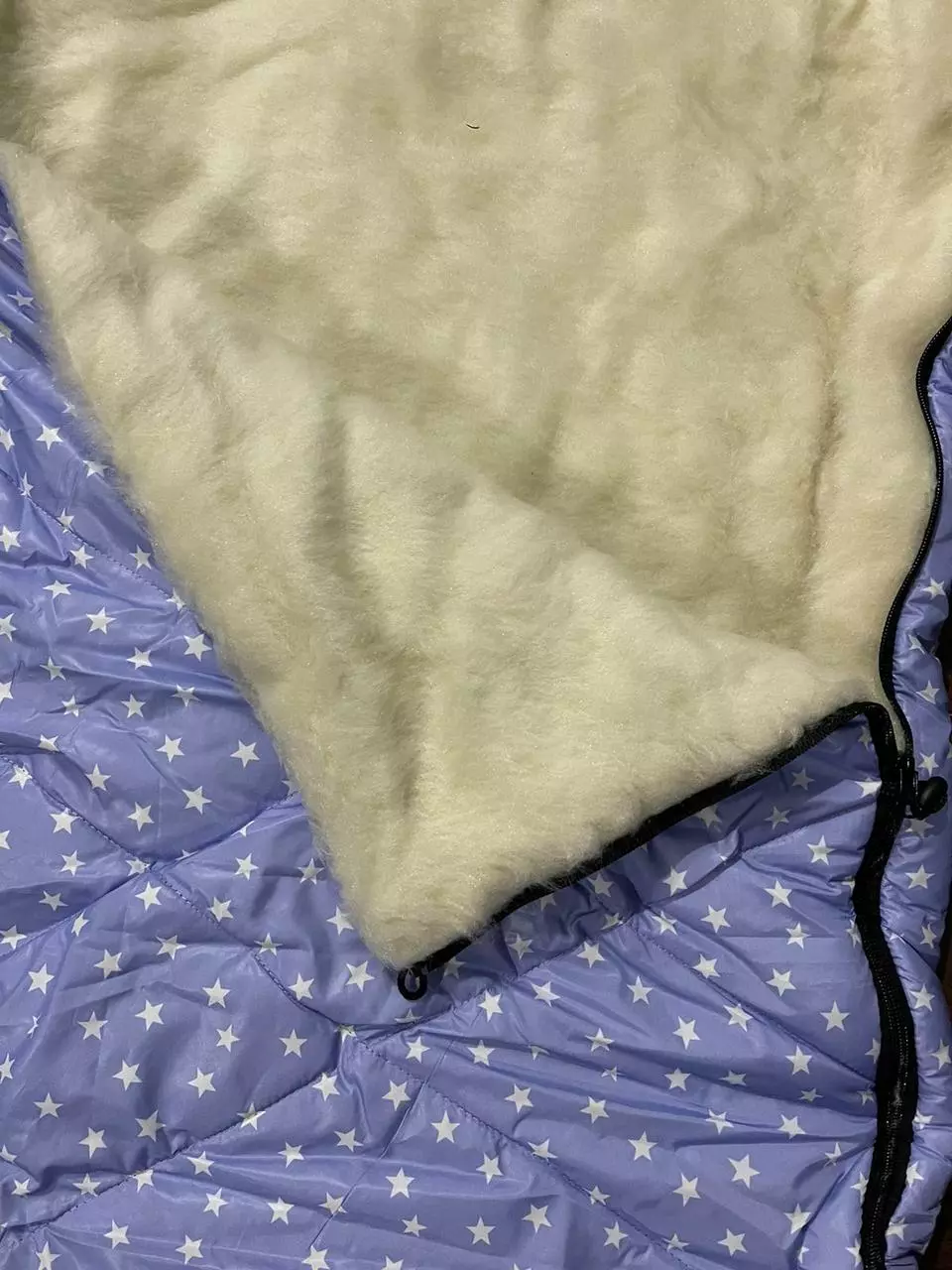 Конверт / чохол для санок, із штучної овчини, на дві блискавки, із затяжками блакитний Зірки
