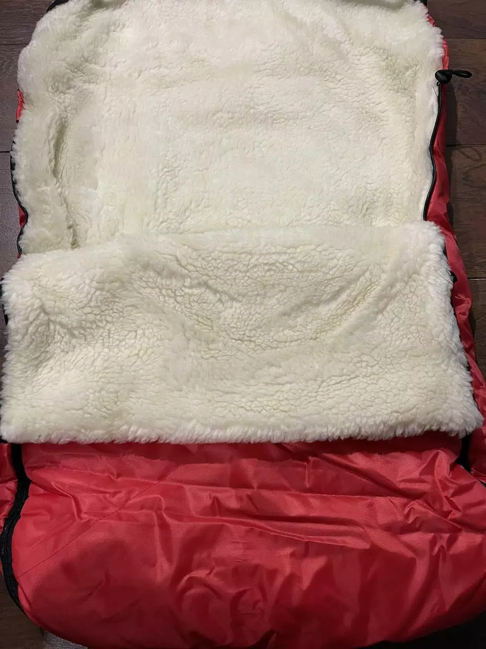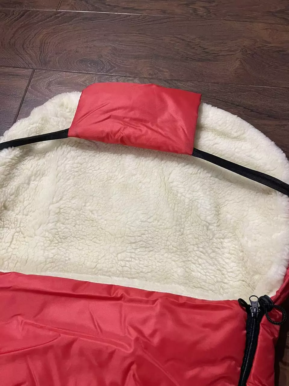Конверт / чохол для санок, зі штучної овчини, на дві блискавки, із затяжками Червоний